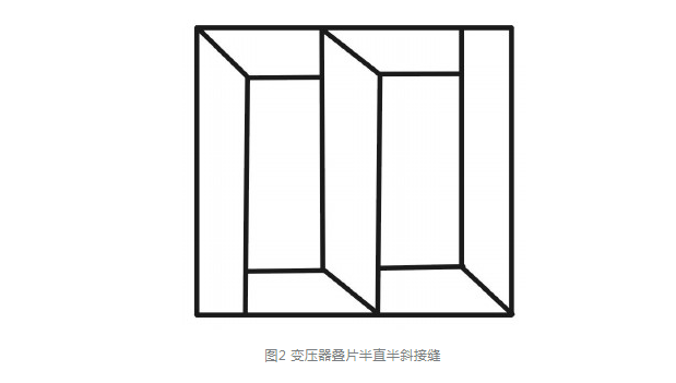 如圖1所示。其特點(diǎn)是加工和疊片都比較方便,搭接面積大,因此所疊裝的鐵心結(jié)構(gòu)強(qiáng)度好,整體性強(qiáng),不易變形,但只能用于熱軋或冷軋無(wú)取向硅鋼片。如用于沿軋制方向磁性能好的冷軋取向硅鋼片,由于在接縫處的磁通不是沿軋制方向通過(guò),磁性能變壞,引起空載損耗增加。